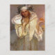 Postal con la pintura de arte fino, Navidades en América (1919) de Alphonse Mucha (186-1939), ilustradora y pintora de origen checo de la época Art Nouveau. Representa un retrato de una mujer con ramas de abeto en su cabello, sosteniendo una manzana y una vela encendida. Una postal ideal para enviar durante las vacaciones.