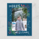 Cuidada acuarela, vegetación de invierno, bayas y nevadas forman un hermoso marco fotográfico. Fondo azul. Foto y nombre del personalizado. Azul, verde, rojo, blanco.