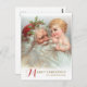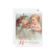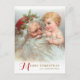 postal de navidades inspirada en un hermoso poster de publicidad de época, de fecha aprox. 1898. El artista puede ser la ilustradora estadounidense Frances Brundage (1854-1937). El poster le muestra a Santa Claus con una gorra roja y un pelo cinto, mirando a un bebé en su hombro izquierdo. Lo que destaca de esta foto de los Navidades es que Santa y el bebé son retratados tan cuidadosamente. Santa es un hombre muy viejo, con una intrincada red de arrugas y ojos que parecen haber perdido su brillo, tal vez debido a las cataratas. El bebé también está representado fielmente (tal vez un poco estereotipadamente lindo con ojos azules amarillos y rizos dorados), pero el contraste entre lo muy viejo y lo muy joven es bastante conmovedor. Otra cosa que me gusta de esta foto es que Santa y el bebé parecen estar compartiendo un momento de diversión, mientras el bebé está examinando las hebras de la enorme barba de Santa.