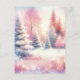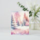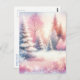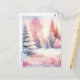 postal de Navidades del maravilloso invierno rosa bonito. Un bosque rosa con pinos cubiertos de nieve.