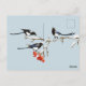 Postal Navidades de acuarela Holly Magpie Bird Nature Art