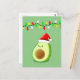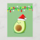 Un lindo dibujo de aguacate con el gorra de Santa. Postales de aguacate personalizado. versión de luces de navidades. Idea de regalo para los amantes del aguacate de todas las edades.