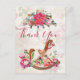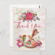 Un navidad te agradece la postal. El fondo es un collage de estilo vintage con una imagen descolorida de rosas rosadas, hojas verdes y escritura francesa. Encendido sobre la parte superior, hay un ramo de navidades de bonito y un caballo victoriano mecedor rodeado de peonías y postes rosados de bonito. Mensaje personalizado en la parte de atrás.