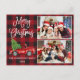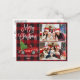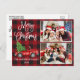 Moderna caligrafía divertida guión Feliz Navidad 2 tarjeta postal de vacaciones - Watercolor Vintage Camión Rojo con árbol de navidad sobre relleno de búfalo rojo