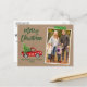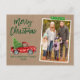 Camión Rojo Vintage con color de agua de pincel moderno con tarjeta postal de la familia navideña Merry navideña - Rústico Papel Kraft, cinta de nata verde de copo de nieve