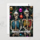 Postal Navidades de esqueletos y adornos coloridos