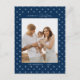 Comparte la alegría de las vacaciones con esta elegante postal de Navidades de fotografía familiar que presenta un acento de patrón de arcos azul marino de moda y diseño minimalista. Perfecto para mandar cálidos saludos a amigos y seres queridos, esta moderna tarjeta de vacaciones resalta su foto familiar favorita con estilo. Personaliza con tus nombres y año por un placer festivo que se siente a la vez intemporal y contemporáneo. Una manera simple pero sofisticada de difundir la alegría de los Navidades.