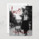 Esta tarjeta postal de Navidades mostraba una fotografía en blanco y negro con una mujer elegante caminando con su perro dálmata con la palabra amor en escritura purpurina roja. Si quieres ir por Navidades simples y subestimados, entonces esta es la tarjeta para ti. Añade tu foto favorita en blanco y negro y tus saludos personalizados y estás bien.