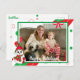 Cute snowman Red and Green Polka Dot Navidades Happy Holidays con tu foto familiar favorita. ¡Simplemente sube tu foto favorita en el área de personalización!