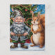 Un gnomo festivo con un sombrero de santa y una ardilla frente a un árbol de Navidad AI generó arte
