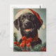 Celebra la temporada con buenos deseos y un toque de encanto. Esta tarjeta de Navidades muestra un adorable Labrador negro con un sombrero festivo de Santa, listo para difundir alegría y alegría. La imagen divertida captura el espíritu de las vacaciones, recordándonos los placeres simples y el amor incondicional que nuestros amigos de cuatro patas traen. Comparte la alegría de la temporada con esta encantadora tarjeta, perfecta para enviar sonrisas a amigos y familiares por igual.