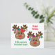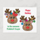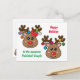 Funny Navidades pickleball dobló postal vertical de saludo con lindos renos y bolas de picnic sobre fondo blanco. Personalizable de texto delante, atrás.