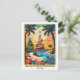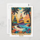 Una magnífica postal de Navidades tropicales con una vibrante y colorida imagen de palmeras, una playa, flores y dos árboles de Navidad. Todos los textos se pueden personalizar. ¡Añade tus vacaciones o tu destino de ciudad natal!