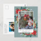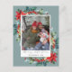Felices fiestas! Enviar una postal de Navidades divertidos (o no) con un mensaje. El diseño presenta una flor tradicional de Navidades rojos acuáticos con bayas de invierno, aguja de pino y vegetación sobre un fondo azul-gris. Personaliza con tu foto, mensaje, nombres y dirección de retorno favoritos. Elementos coincidentes disponibles.