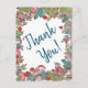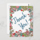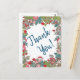 Tres alegres ratones grises, con sus pañuelos y sombrero de Santa, están deseando a su destinatario "¡Gracias!" por sus Navidades o por la consideración de las vacaciones de invierno. Los ratones, hojas, helechos, flores y setas rojas están en un fondo blanco y las palabras "¡Gracias!" están en verde azulado oscuro. Al revés hay un solo ratón con una flor en blanco. Hay mucho espacio para un mensaje escrito a mano. Arte y diseño originales de Tuzi Williams.
