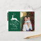 Un elegante ciervo blanco salta por encima de las palabras de los Navidades Esta es la temporada para ser alegre en esta hermosa postal de vacaciones. Clásica elegancia con un reno de bonito sobre una magnífica caligrafía y una foto familiar llenando el frente de esta célebre postal verde. La parte de atrás es una segunda fotografía y el mensaje de su personalizado.