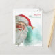 Aquí hay un hermoso retrato vintage de un Santa Claus sonriente en la parte delantera de esta postal de vacaciones. Santa lleva al final su gorra tradicional con una tostada de oro. El retrato se coloca sobre un verde azulado salpicón abstracto, y el texto rojo y verde azulado de la parte superior dice "Navidades FELIZ". La parte posterior de la tarjeta postal tiene dos campos de texto para personalizar.
