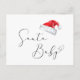 Una tierna Navidad en temporada de vacaciones, una invitación a una ducha de bebé con postal con "Santa Bebé" escrita en un elegante guión con un latido cardíaco, un ilustracion acuarela de un gorra rojo de Santa Claus y una invitación a una alegre ducha de bebé. Personalice el nombre de la madre en un elegante guión rojo y los detalles de la ducha en una simple tipografía moderna.