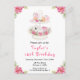 Esta elegante y festiva invitación de cumpleaños incluye un puesto de pasteles con galletas de jengibre, macarons, dulces, cacao caliente y una tetera. En las esquinas hay hermosas flores rosa de la cinsettia. El texto combina guiones manuscritos y sans serif para un estilo elegante y moderno. Es perfecto para un brunch o un fiesta de té para Navidades de cumpleaños.