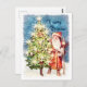Vintage tarjeta de Navidades victorianos con el brazo caminando de Papá Noel con un árbol de Navidad.