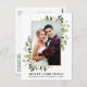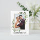 Elegante color de agua verde invierno Feliz Navidad Boda Fototarjeta de vacaciones recién casada incluye hojas de eucalipto y bayas rojas. Marco dorado.