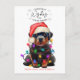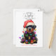 Una divertida tarjeta de Navidades de vacaciones con un lindo perro acuarela en luces de Navidad y un simple texto de tipografía que dice "Deseos de Navidades y Besos de Pergoja". Cambiar fácilmente el texto a Besos de Perro, Besos de Cachorro, etc. El reverso presenta un patrón de garra en forma de corazón. Perfecto para cualquiera que ame a su bebé de piel.