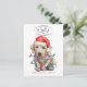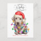 Una divertida tarjeta de Navidades de vacaciones con un lindo perro acuarela en luces de Navidad y un simple texto de tipografía que dice "Deseos de Navidades y Besos de Pergoja". Cambiar fácilmente el texto a Besos de Perro, Besos de Cachorro, etc. El reverso presenta un patrón de garra en forma de corazón. Perfecto para cualquiera que ame a su bebé de piel.