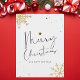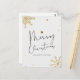 Esta hermosa postal Navidad presenta un elegante diseño en blanco y negro, adornado con estrellas doradas y brillantes copos de nieve. La elegante caligrafía de "Feliz Navidad" añade un toque moderno y sofisticado, perfecto para enviar cálidos deseos de vacaciones. Ya sea que estés celebrando con la familia o enviando saludos desde lejos, esta postal es una manera impresionante de difundir la alegría de la temporada.