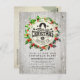 Invitaciones para fiestas navideñas / Tarjeta postal Fiesta de saludos de temporada navideña - Moderna corona floral y nieve del Holly Verde Rojo.