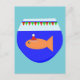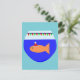 Esta postal cuenta con un divertido naranja Navidad pez dorado usando un sombrero festivo de santa. El pez dorado está nadando en el agua azul de su pecera. El pez ha decorado la parte superior del tazón con banderas rojas y verdes que deletrean el mensaje "Merry Fishmas". Este divertido pescado de temporada está listo para un gran fiesta de Navidades.