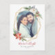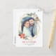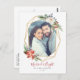 Envíe sus primeros saludos de vacaciones como recién casados con esta postal de foto de Navidades florales geométricos. La elegante tarjeta de vacaciones cuenta con un marco geométrico de bonito dorado decorado con Navidades festivos florales. Personalízalo con tus nombres y foto favorita. Añade fácilmente un mensaje personalizado a los seres queridos en la parte trasera de la tarjeta postal.