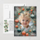 Esta tarjeta de Navidades de fotografía de personalizable muestra elegantes adornos de árbol de Navidad con temática invernal que enmarcan hermosamente tu fotografía elegida. Es una elección ideal para ocasiones especiales durante la temporada de Navidades. Esta tarjeta seguramente hará una declaración elegante y llamativa durante la temporada de vacaciones, sirviendo como un placer maravilloso. El esquema de color incluye los tradicionales tonos verdes, rojos, blancos y grises, y se puede personalizar insertando cualquier foto que se desee. El diseño incorpora ramas de árboles de Navidad extravagantes, Navidades baubles y decoraciones festivas, creando un ambiente alegre y festivo. En cambio, descubrirás saludos preescritos que se pueden personalizar a tu gusto.