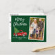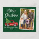 Camión Rojo Vintage de color de agua con escritura de pincel moderno con árbol de Navidad - Feliz Navidad de la familia Foto postal verde