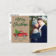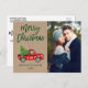 Kraft Green Brush Script Watercolor Vintage Camión Rojo con Árbol de Navidad - Feliz Navidad Couple Foto Postcard