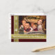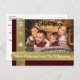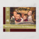 Una tarjeta de Navidades que por lo demás es atractiva y atractiva para los ojos es bombardeada por una ardilla. Foto familiar resaltada por bandas de oro y un fondo rojo Navidad. Su texto a lo largo de la banda inferior en una fuente blanca fácil de leer. Puede personalizar el saludo de los Navidades de fondo, su dirección de retorno y sus nombres en script cerca de la parte inferior con espacio para que añada una nota personal manuscrita.