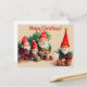¡Adorables gnomos de jardín celebrando a los Navidades! Texto superior: Feliz Navidad