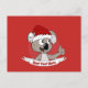 Postal con ilustracion de lindo oso koala con el gorra de Santa en círculo rojo, Navidades diseño de vacaciones para niños, diseño de plantillas editable con campo personalizado para tu propio texto, ilustrado por Radka Kavalcova