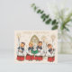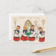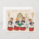 Postal de navidades inspirada en un alegre dibujo de color vintage. La imagen muestra a cuatro cangrejos cantantes, dos de ellos sosteniendo el libro de música, los otros dos llevando velas gigantescas. Como telón de fondo, hay una candelabra con otras velas de gran tamaño y una ventana de la catedral abovedada con detalles decorativos. Muchos detalles de la imagen se realzan con el color del oro antiguo, como por ejemplo la ventana de la iglesia, las estrellas simples en el fondo, el brillo de las velas y los adornos de la ropa de los niños. El cuadro es de un estilo personalizado con encanto.