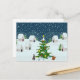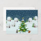 Postal Navidades pueblo de nieve con árbol de navidad y a