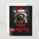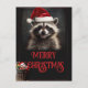 Raccoon vida silvestre alegre, navidades rojos graciosos abrazo, gorra basura mascota animal, nieve fría santa claus, invierno feliz con copos de nieve, navidades de vacaciones lindo Raccoon