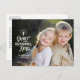 Esta moderna postal de vacaciones cuenta con un diseño de letras bonitos y religiosas. La postal incluye la frase "Gloria al recién nacido Rey" artísticamente arreglada en un diseño de tipografía con una cruz por encima. La inscripción se coloca en el lado izquierdo de la postal y sobrepone una foto completa. En la parte de atrás, encontrará espacio para escribir un mensaje personalizado o "año de revisión" a los destinatarios.