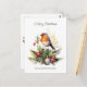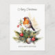 Este diseño presenta un ilustracion acuarela de roble con pechos rojos encaramado en una rama de pino.