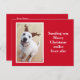 Postal Navidades rojos de perro con cachorro de reno sonr