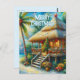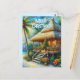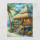 Postal Navidades Tropical Hut Palm Tree Beach Lights