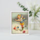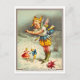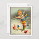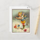 Esta postal presenta un ilustracion vintage de la era victoriana que muestra un bufón con marionetas y le desea al destinatario una feliz Navidad y feliz año nuevo.