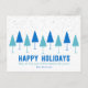 La postal presenta árboles de Navidad azules, caída de nieve y Feliz Festividad escrita con letra moderna. Personalizar con su propio texto. Puede mover, eliminar o cambiar la mayoría de los elementos de diseño/fuentes/fondo según su elección/preferencias.