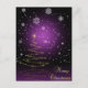 Un ilustracion de Navidades relucientes y nevados con un flamante árbol de navidad y copos de nieve sobre un fondo morado.