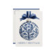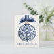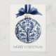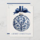 This personalized holiday postcard features a beautiful navy blue and white chinoiserie Christmas ornament on a matching blue ribbon. Personalize with your choice of special holiday message on the front.