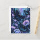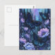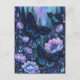 This mesmerizing design features three incredibly detailed butterflies with deep navy blue wings adorned with shimmering white speckles and intricate textures. Rendered in a lush and luminous watercolor style, the butterflies soar gracefully over an enchanting garden of hand-painted purple peonies and delicate indigo wildflowers. The background features the silhouettes of a dense pine forest reaching up toward a magical night sky filled with a swirling turquoise and violet nebula. Brilliant golden stars and soft light orbs drift through the composition, illuminating the misty mountain air with a dreamlike, ethereal quality. The overall aesthetic is elegant, serene, and full of natural wonder, making it an irresistible choice for any fan of celestial art, lepidoptera, and fantasy-inspired nature designs. This elegant butterfly postcard is a wonderful choice for sending a "thinking of you" message or a mystical greeting to a friend who loves the quiet mystery of the woods. You might choose to use this artistic card for a celestial-themed birthday invitation or to celebrate a peaceful camping trip milestone with your family members. It also makes a precious decorative piece for a bedroom wall or a bright addition to a dream journal as a small token of happiness. This versatile design is also an excellent choice for a housewarming message, a winter solstice thank you note, or as a heartwarming way to share a message of joy for any situation or event.