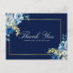 Postal Navy Blue Gold Floral Elegant Script Gracias